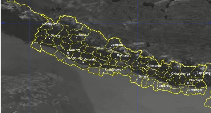 आज राति देशका पहाडी भूभागमा आंशिकदेखि साधरणतया बदली रही बाँकी भूभागमा मौसम मुख्यतया सफा रहने छ।
