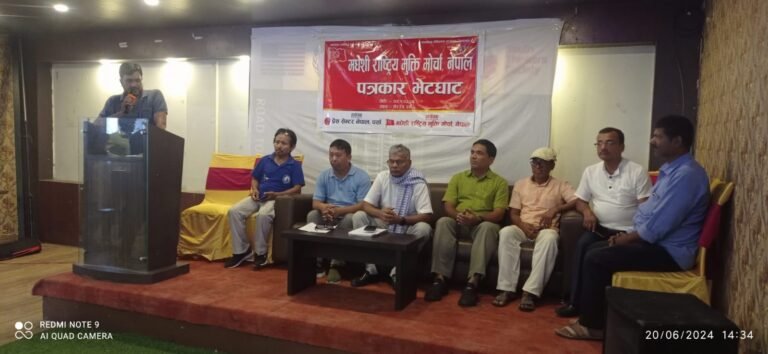 राजनीतिलाई सेवाको साधन बनाउनु भन्दा कमाउको साधन बनाईएको छ । अर्थात ‘राजनीति फोहोरी खेल हो’ भन्ने गलत भाष्य सृजना गर्ने तथा सर्वत्र धारणा बनाउन खोजिएको देखिन्छ । नेपालमा सबैभन्दा उत्पीडित तथा उपेक्षित मधेश र मधेशी भएकोले समानुपातिक समावेशी प्रतिनिधित्व तथा धर्मनिरपेक्षता सहितको संघीय लोकतान्त्रिक गणतन्त्र मधेशको लागि अपरिहार्य भएकोले मधेशमा कार्यरत संगठन र नेता कार्यकर्ताहरु इमान्दार, सबल र सक्षम हुनुपरेको वर्तमान संकटको घडीमा मधेशी राष्ट्रिय मुक्ति मोर्चा, नेपालको सयौ गुणा बढी आवश्यकता रहेपनि हामी यसलाई कोमामा राखेको हुनाले भोली र पर्सि हुने मोर्चाको केन्द्रीय कार्यालयको बृहत विस्तारित बैठकले नयाँ उर्जा सहित पुनर्जीवन प्रदान गरी सबै प्रकारको गलत प्रवृत्तिको विरुद्ध जनतासँग हातेमालो गर्दै अधिकार सम्पन्न तथा समृद्ध मधेशको निर्माणमा सबैसंग हातेमालो गर्दै हामी जुट्ने प्रतिबद्धतालाई तपाँई पत्रकार मित्रहरुको माध्यमबाट आदरणीय जनसमुदायलाई जानकारी गराउँदछौं ।