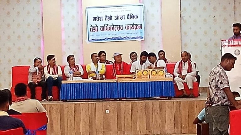 बीरगंज । बीरगंजबाट प्रकाशित हुदै आइरहेको मधेस तेस्रो आँखा दैनिक पत्रिकाको तेस्रो वार्षिकोत्सबको उदघाटन जगरनाथपुर गाउँपालिका प्रमुख श्रीकान्त यादवले गर्नुभएको थियो ।उनलेे भने पत्रकारले सत्य तथ्य समाचार लेख्न आग्रह गर्नुभएको हो ।