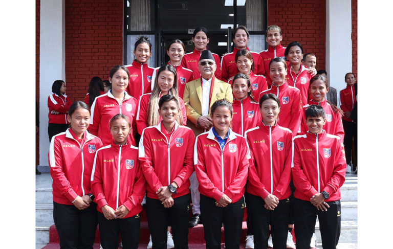काठमाडौं । नेपाली महिला फुटबल टोलीले आज प्रधानमन्त्री केपी शर्मा ओलीसँग भेटेका छन् ।