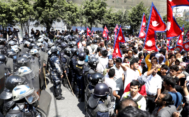 काठमाडौं । काठमाडौंको तीनकुने क्षेत्रमा राजावादीहरूले तोकिएको घेरा तोड्न खोजेपछि अवस्था तनावग्रस्त भएको छ । प्रदर्शनका लागि तोकिएको घेरा तोड्न प्रदर्शनकारीले प्रहरीमाथि ढुंगामुढा समेत प्रहार गरेका छन् । प्रदर्शनकारीलाई रोक्न प्रहरीले अश्रुग्यास प्रहार गरेको छ ।