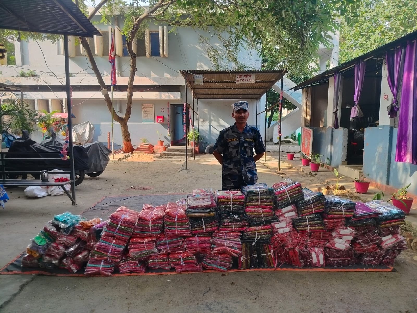 मंगलबार सशस्त्र प्रहरी बल,नेपाल प्रस्तावित सीमा सुरक्षा गुल्म वीरगञ्ज र वीरगञ्ज भन्सार कार्यालयबाट खटिएको संयुक्त टोलीले बिशेष सुचनाको आधारमा वीरगञ्ज महानगर-१० बजरंगटोल स्थित सुधा कुञ्ज लेखिएको ३ तले पक्की घरको भूईतलामा भाडामा लिई धिरज रौनियारले भारतबाट अबैध रुपमा भन्सार छली चोरी पैठारी गरी ल्याई गोदाम गरी भण्डारण गरी राखेको अवस्थामा मूल्य रु.७ लाख ७० हजार ५ सय मूल्य बरावरको लत्ताकपडा तथा BR05U4530 भारतिय नम्बरको सुपर स्पलेण्डर मोटरसाईकल भेटाएको हुँदा उक्त मोटरसाइकलको रु.१ लाख ५० हजार मुल्याङ्कन गरी कपडा सहित मोटरसाइकल नियन्त्रणमा लिई आवश्यक कारवाहिको लागि वीरगञ्ज भन्सार कार्यालयमा बुझाईएको छ ।
