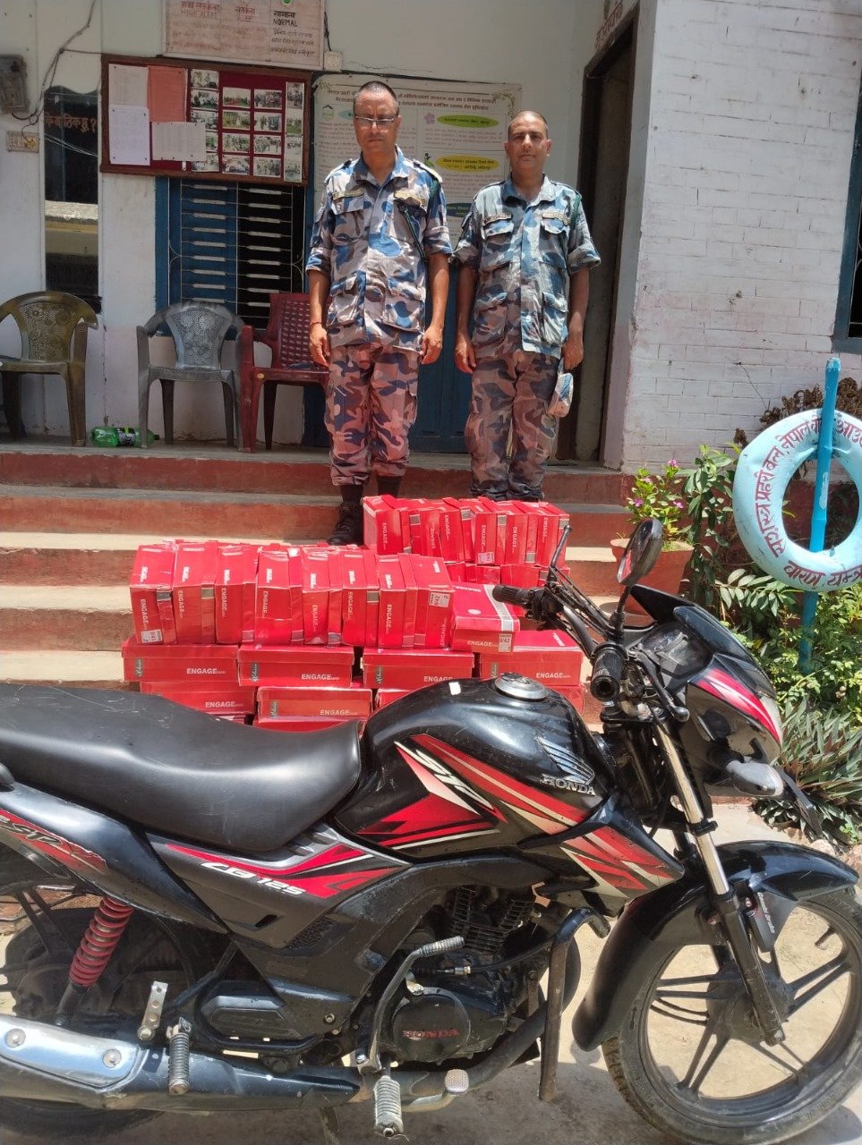 त्यसैगरी आजकै मितिमा सशस्त्र प्रहरी बल,नेपाल बोर्डर आउट पोष्ट (बिओपि) सिर्सियाबाट खटिएको टोलिले जिल्ला पर्सा बीरगन्ज महानगर-३ छपकैयाबाट अबैध रुपमा भारतबाट भन्सार छली चोरी पैठारी गरी नेपालतर्फ ल्याउदै गरेको रु २ लाख ४२ हजार मूल्य बराबरको छालाको जुत्ता र उक्त कार्यमा प्रयोग भएको मो.सा.समेत नियन्त्रणमा लिई आवश्यक कारबाहिको लागि वीरगंज भन्सार कार्यालय पर्सामा बुझाएको छ ।