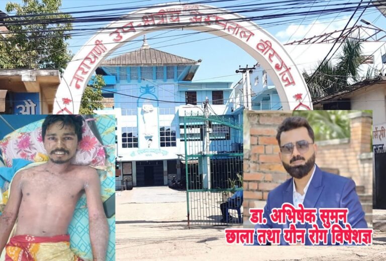 वीरगंज, १७ साउन । वीरगंजको नारायणी अस्पतालमा छाला सम्बन्धी एक दुर्लभ, प्राणघातक र जटिल रोग टक्सिक इपिडर्मल नेक्रोलाइसिस (TEN) रोग लागेका एक बिरामीको पहिलो पल्ट सफल उपचार भएको जनाईएको छ ।
