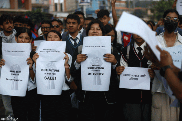 उनीहरूले ‘आवर फ्युचर इज नट फर सेल’, से नो टु करप्सन, जेन-जी हेयर-फ्युचर क्लियर’ जस्ता नारा उल्लेखित प्ले-कार्डहरू बोकेर प्रदर्शन गरिरहेका छन्।