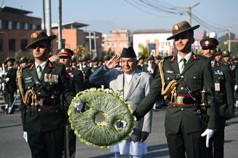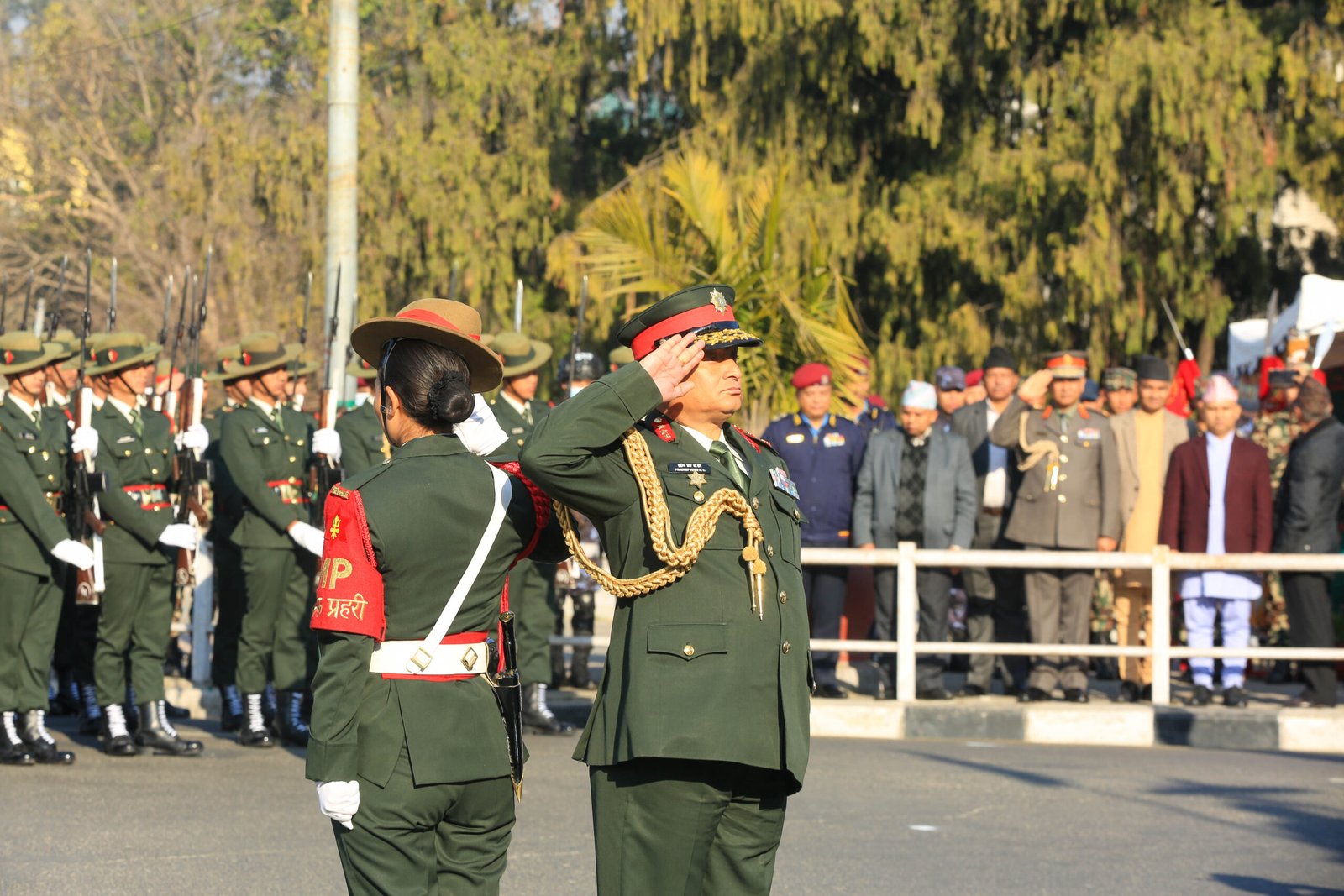राष्ट्रपति पौडेल कार्यक्रम स्थल पुग्दा नेपाली सेनाको एक टुकडीले उनको सम्मानमा सलामी अर्पण गरेको थियो ।
